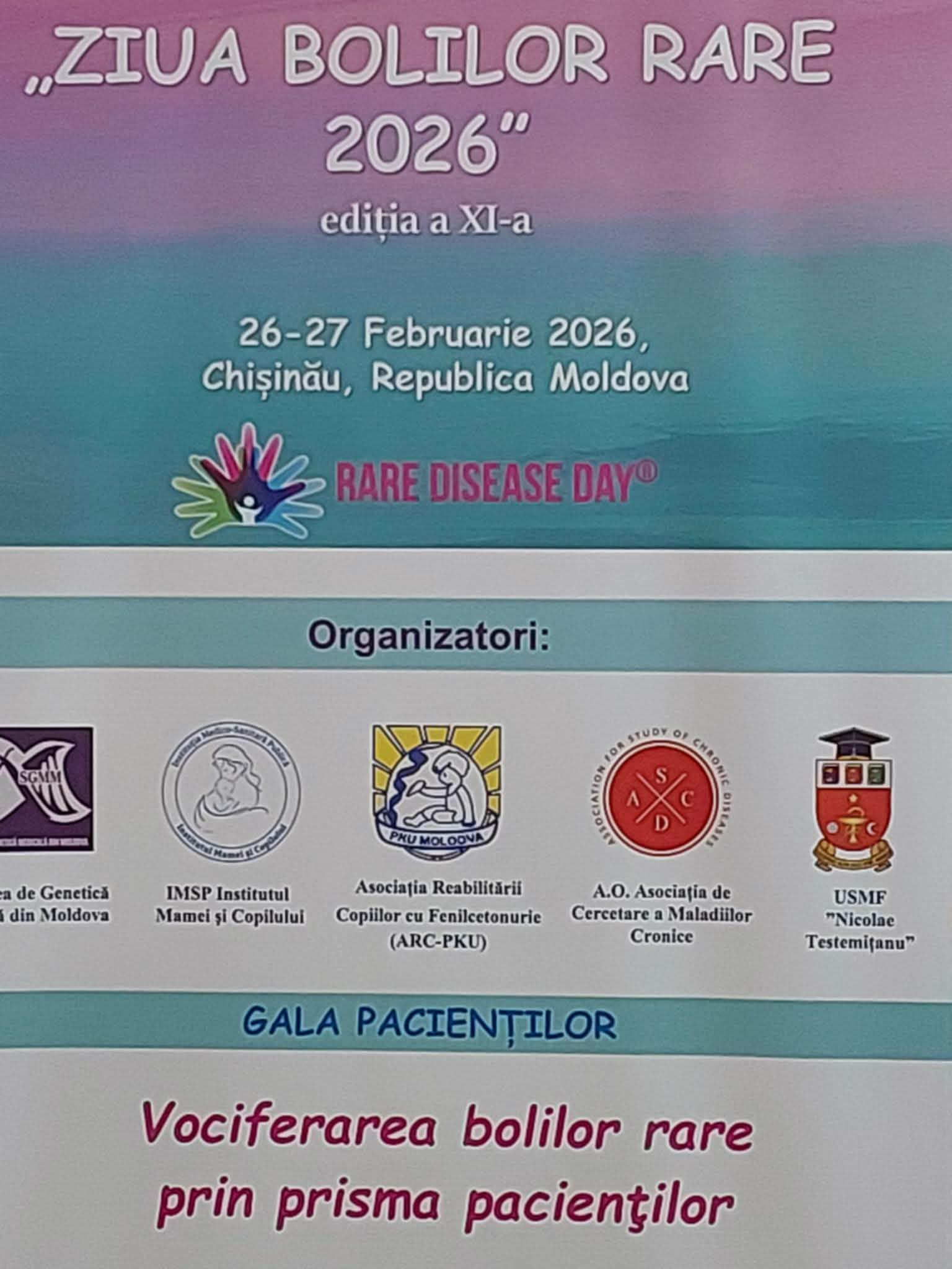 Astăzi, 27 februarie, în Republica Moldova este marcată Ziua internațională a bolilor rare. În acest context, la Institutul Mamei și Copilului se desfășoară cea de-a XI-a ediție a conferinței naționale cu participare internațională „Ziua bolilor rare 2026”. Tema ediției din acest an – „Vociferarea bolilor rare prin prisma pacienților” – aduce în prim-plan vocea persoanelor afectate și necesitatea unei abordări centrate pe pacient.
